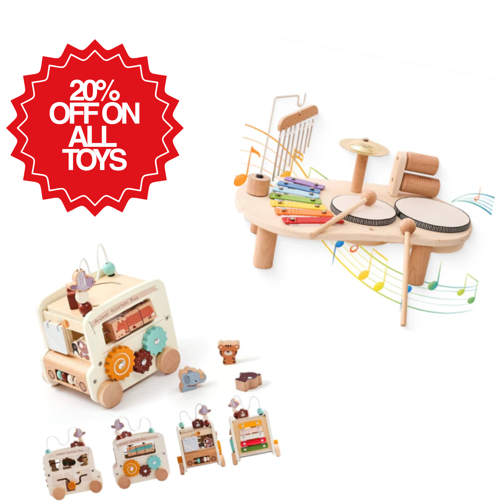 20% OFF on all silicone and wooden toys from our collections. Ends Sunday! Shop now and save.”